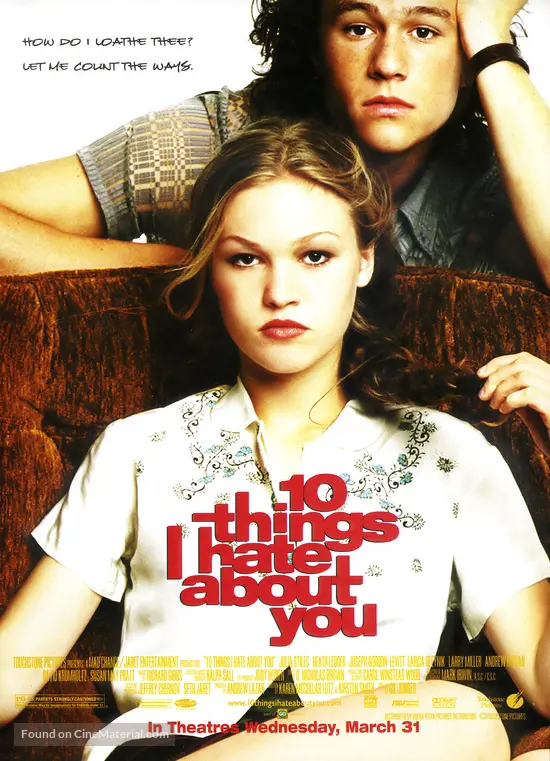 March 31, 2019 7:53am. '10 Things I Hate About You' Buena Vista Pictures/Photofest. On March 31, 1999, Touchstone Pictures released the Heath Ledger and Julia Stiles rom-com 10 Things I Hate About.