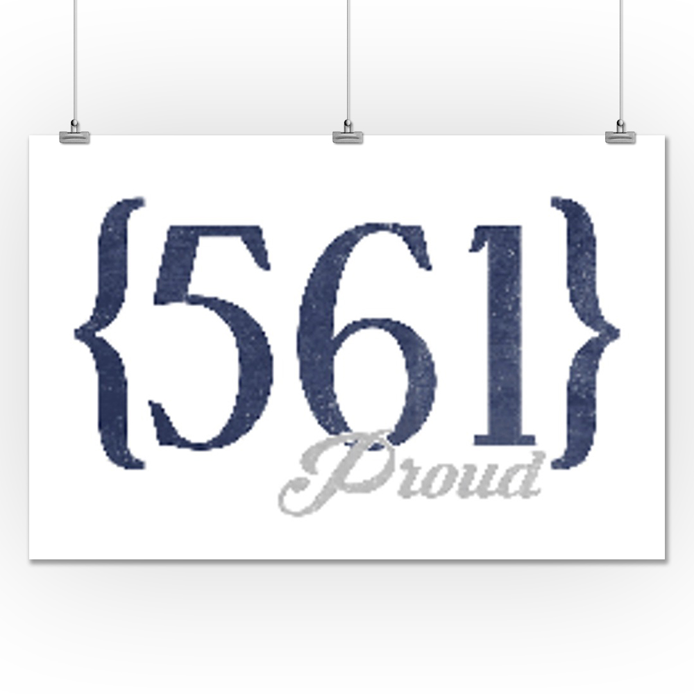 Pompano Beach, Florida 561 Area Code (Blue) Lantern Press Artwork (24x36 Giclee Gallery