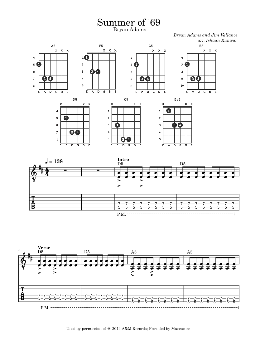Guitar Summer of '69 Bryan Adams Sheet Music, Chords, & Vocals YouTube
