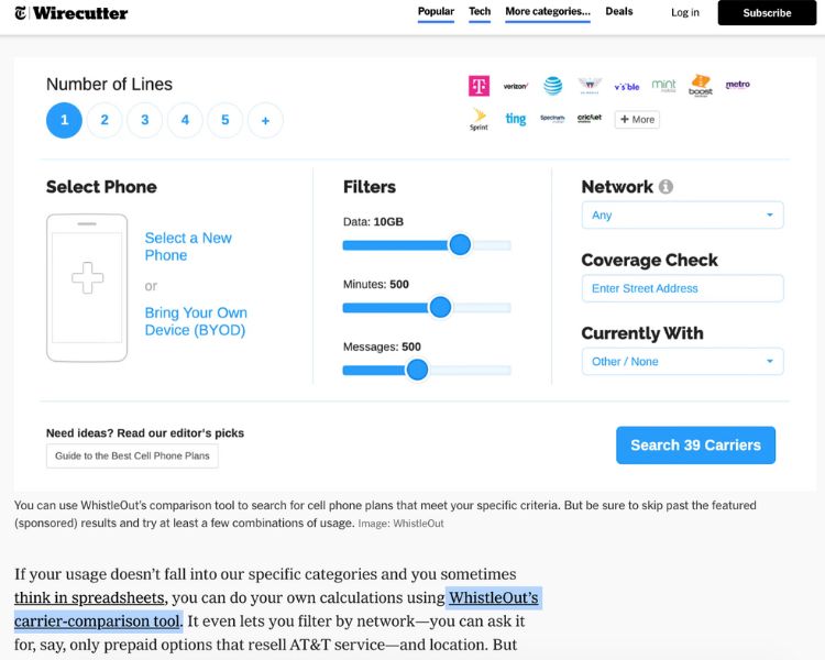 The Best Cell Phone Plans (The Wirecutter) WhistleOut